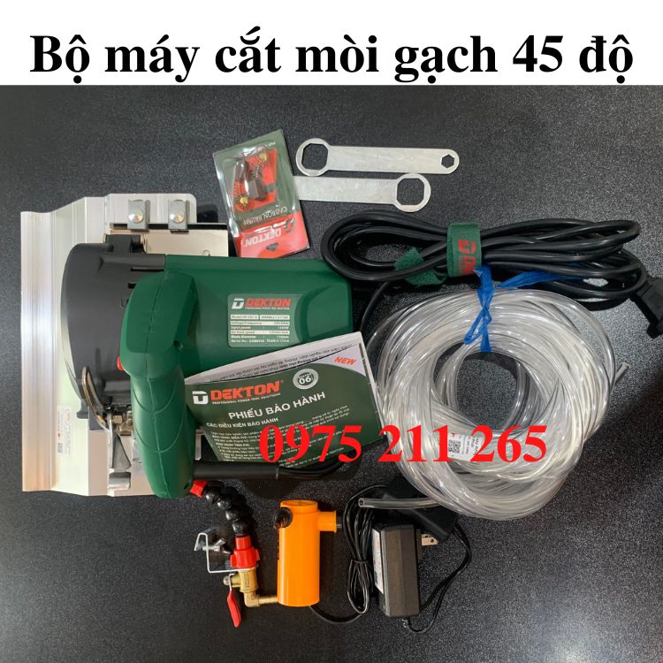 Bộ máy cắt gạch 45 độ giúp cắt mòi cạnh gạch nhanh và chính xác hơn khi ốp lá gạch.